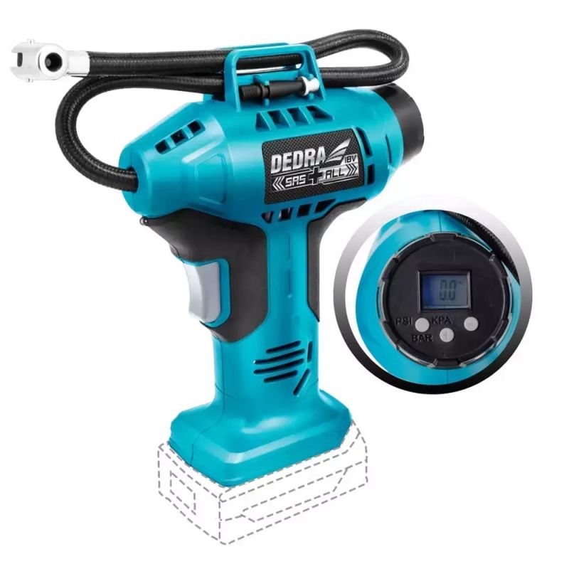 Pistoletowa pompka, kompresorek powietrza 18V, DEDRA SAS+ALL DED7078LCD v.0