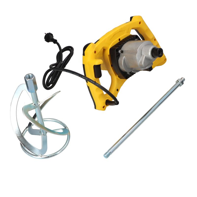 Solidne mocowanie mieszadła na gwincie M14 zapewnia stabilność i kompatybilność z szeroką gamą dostępnych akcesoriów. Urządzenie charakteryzuje się ergonomiczną konstrukcją i wygodą obsługi, a w zestawie znajdują się mieszadło o średnicy 120 mm oraz dwa klucze montażowe.
